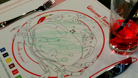 Dès que nous avons franchi le seuil de La Parenthèse un samedi midi avec mon chéri et les kids, les enfants se sont rués dans la salle de jeux, nous les avons revu pour passer la commande, pour manger et sinon, ils ont joué fort sagement (de très beaux jouets à disposition et des tablettes pour les plus grands), ils ont lu sur des grands poufs, ont dessiné sur leurs sets de tables prévus à cet effet (eh, les restaurants, ça c’est tout bête à mettre en place des crayons de couleurs et un set de table à colorier ! Un peu comme des toilettes propres…)