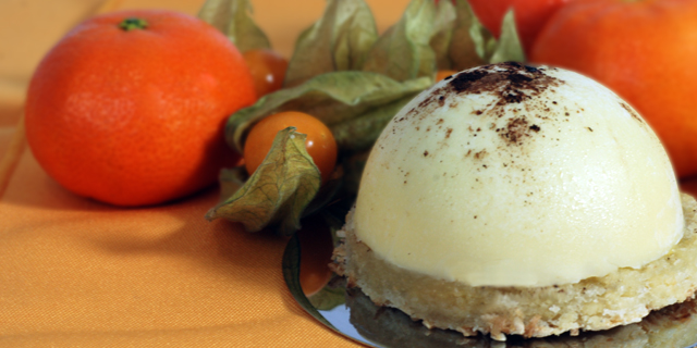 Les dômes au chocolat blanc La mousse de clémentine et pamplemousse Préparation des dômes de chocolat blanc (peut être préparer longtemps à l’avance) : – Faire fondre le chocolat blanc au bain marie jusqu’à ce qu’il soit bien lisse. Puis à l’aide d’un pinceau, badigeonnez les moules demi-sphère de chocolat. Placez au réfrigérateur pendant 20 minutes puis renouvelez l’opération. Placez vos moules au réfrigérateur. Préparation de la dacquoise : – Préchauffez votre four à 180°C. Mélangez poudre d’amandes et poudre de noisettes. Préparation de la mousse de clémentine et pamplemousse : – Mettre les feuilles de gélatine à tremper dans l’eau froide. Faire chauffer la confiture pour qu’elle devienne un peu liquide. Mixer pour enlever les éventuelles « résidu » de fruit ou filtrer. Incorporer les feuilles de gélatine. Laisser tiédir Ensuite découpez 8 ronds dans votre dacquoise avec des emportes pièces du même diamètre que vos dômes en demie sphère pour en faire des palets qui seront la base de votre dessert. Démoulez les dômes de chocolat blanc et faites y couler la mousse de clémentine et pamplemousse en veillant à garder 5mm pour le palet de dacquoise. Placer au réfrigérateur pendant 4h (Vous pouvez reposer à nouveau les dômes dans les moules demi sphère pour ne pas les abîmer). Dressez vos 8 assiettes. Placez au centre de l’assiette, votre palet de dacquoise puis coiffez-le de votre dôme au chocolat blanc fourré à la mousse de clémentine et pamplemousse. Décorez les dômes avec des paillettes dorées comestibles et agrémentez les assiettes avec quelques physalis. Excellentes Fêtes de fin d’année !