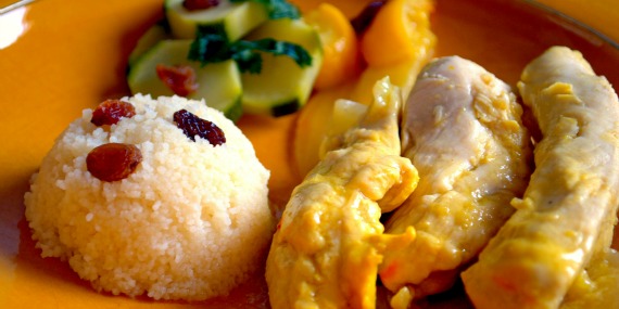 Arrosez avec la sauce. Servir avec des courgettes simplement passées à la poêle dans un peu d’huile d’olive et de persil et de la semoule.