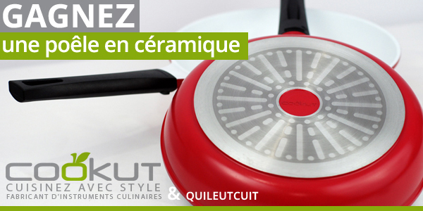 Et d’où vient-elle ma nouvelle copine la poêle en céramique rose (enfin « framboise » pour être plus précise) ? De chez Cookut,  spécialiste des ustensiles de cuisine en céramique et comme ils sont trooooop sympa chez Cookut, vous allez pouvoir gagner vous aussi une nouvelle meilleure copine « poêle en céramique » de 24 cm dans la couleur que vous voulez. Elle est pas belle la vie ?