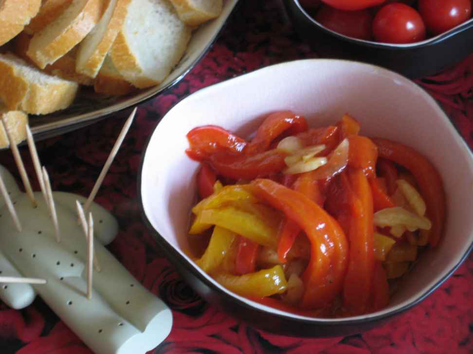 On commence donc par les poivrons marinés façon Estelle G (façon old school laborieuse) et façon Estelle S (moderne et équipée)